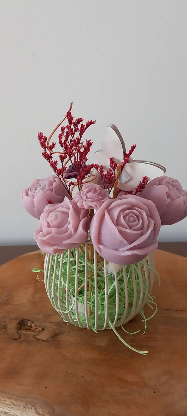 Bouquet de fondants à l'huile essentielle de Bois de Rose, composé de 9 fondants en forme de fleurs.