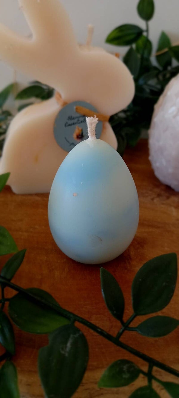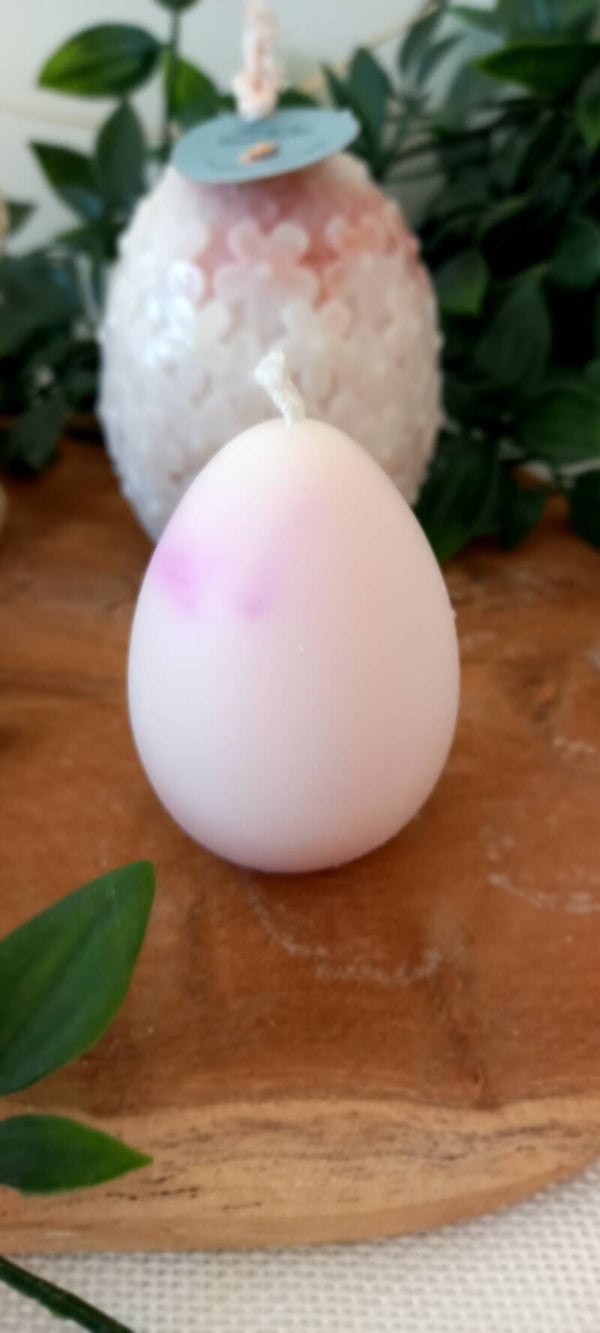Bougie en forme d'oeuf à la cire d'olive, mèche coton et parfum de Grasse "Chocolat/noisette".