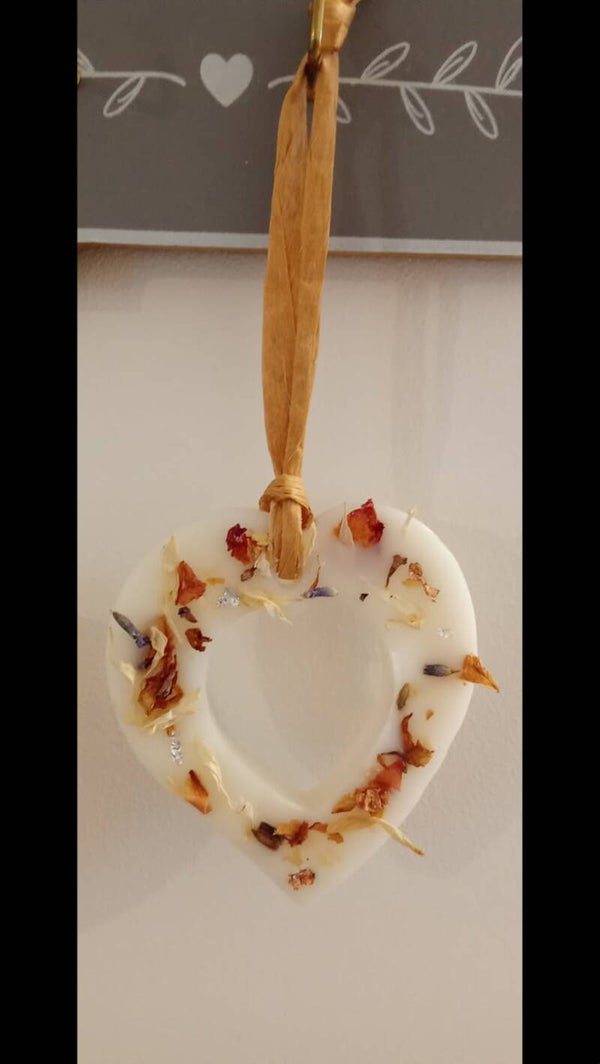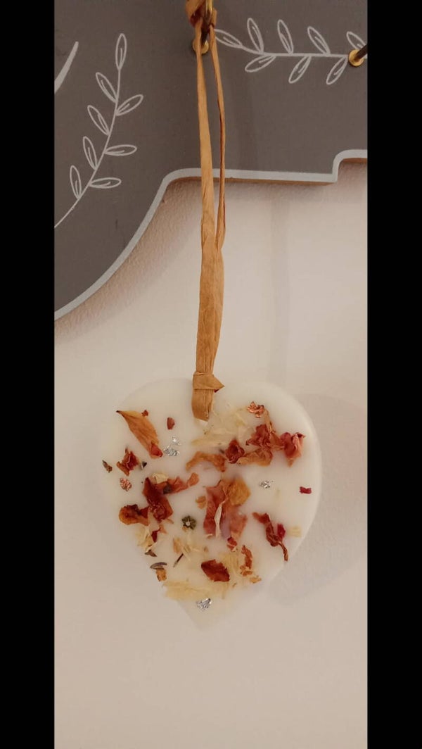 Suspension parfumée à la cire d'olive " Bien être " huile essentielle de Lavande vraie, Jasmin et Ylang-ylang et fleurs séchées